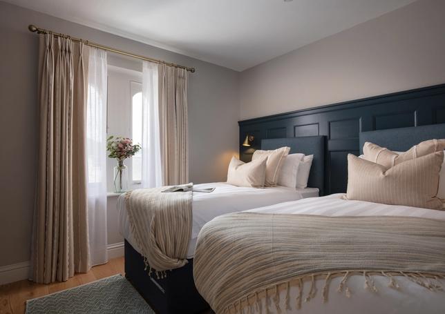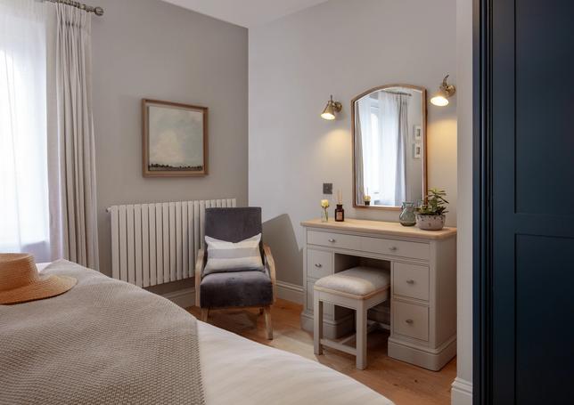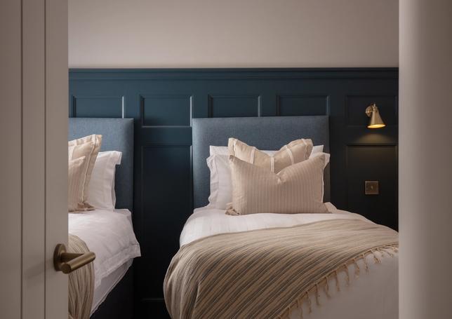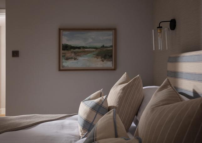Designed with a mix of New England and inspired by our coastal surroundings we wanted to create a relaxing and sumptuous atmosphere, with added luxury of wooden floors, bespoke wainscoting and textured wallpapers.